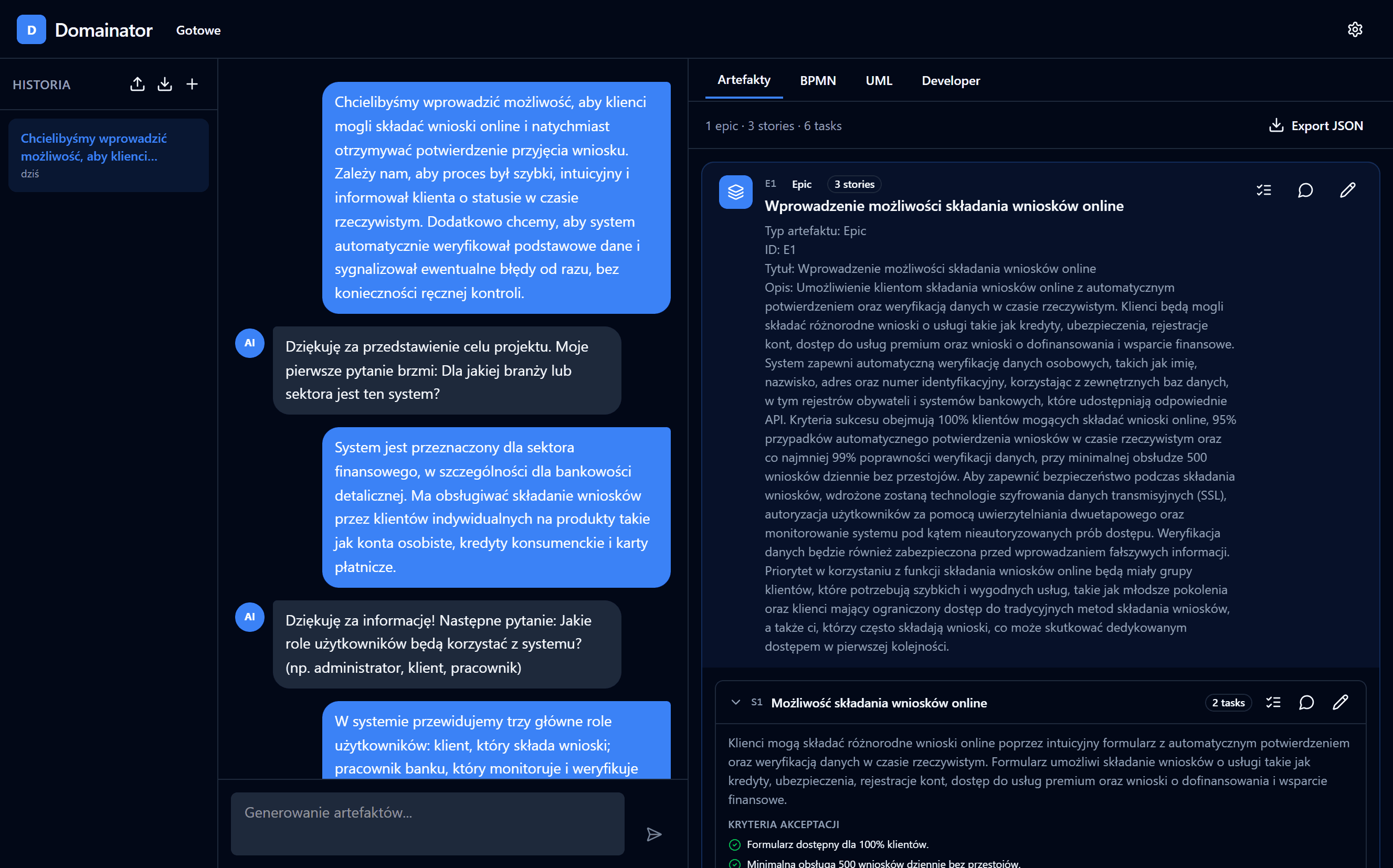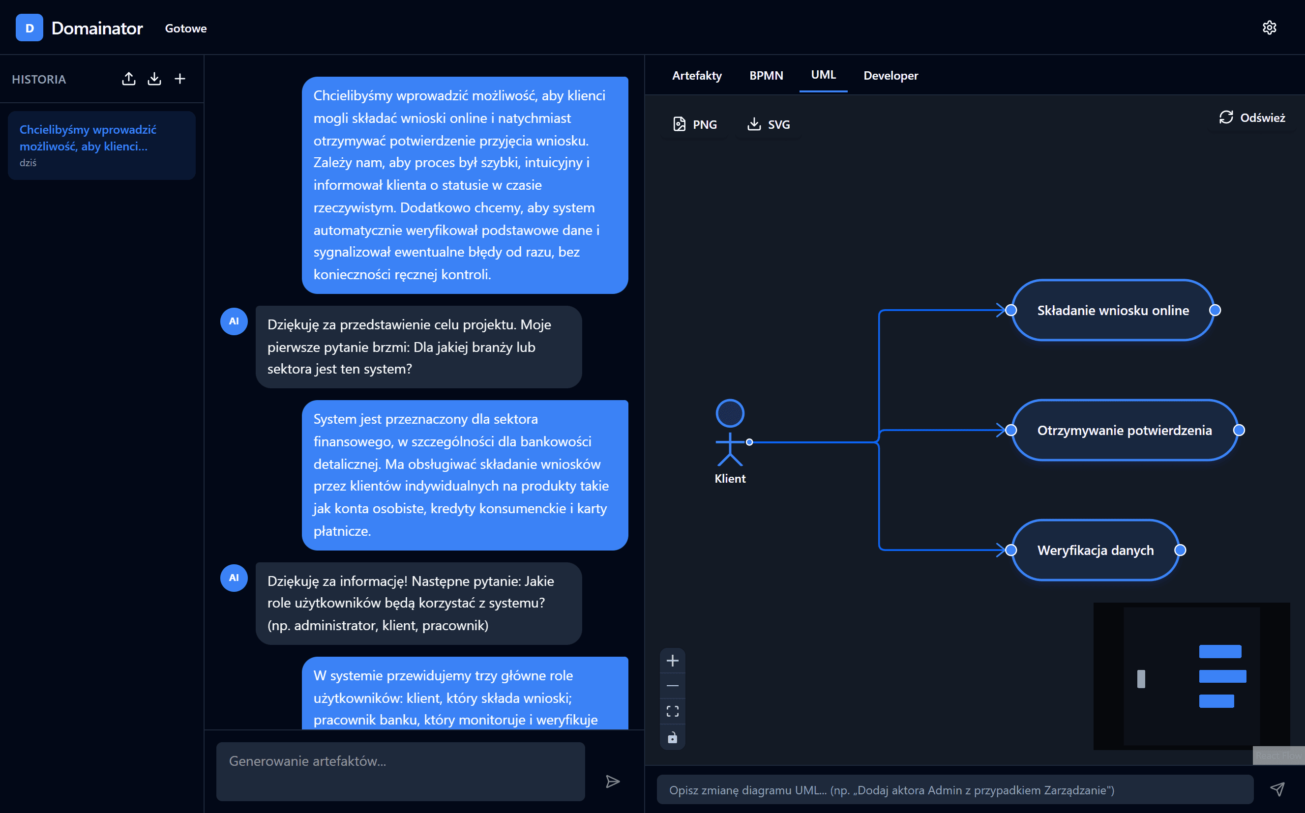 Narzędzie do konwersji opisów biznesowych na diagramy / procesy architektury systemów. Umożliwia wizualizację i planowanie architektury IT na podstawie naturalnego języka, co ułatwia komunikację między zespołami technicznymi a biznesowymi.
